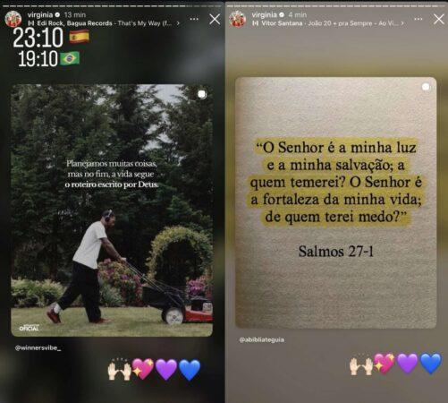 No conteúdo compartilhado através dos stories do Instagram, Virginia exibiu uma reflexão sobre o curso da vida e o destino. A mensagem dizia: “Planejamos muitas coisas, mas no fim, a vida segue o roteiro escrito por Deus”.